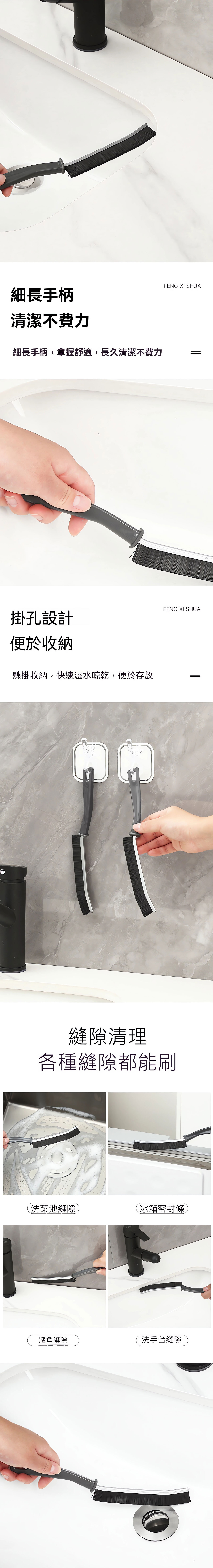 細刷頭深入縫隙、搭配耐磨刷毛,輕鬆清除陳年污垢與灰塵,