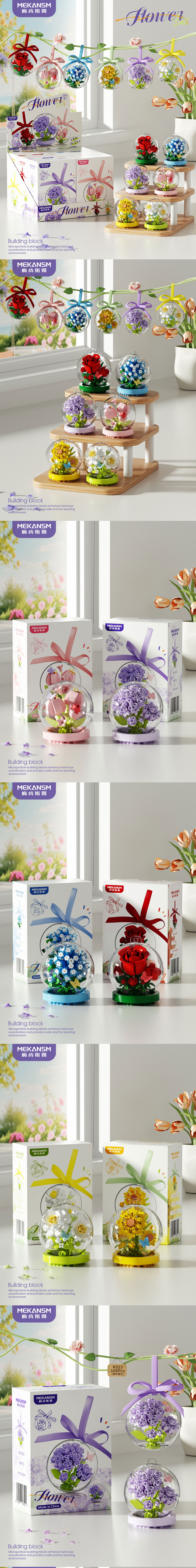 療癒拼裝體驗:透過積木拼裝花朵與水晶球造型,培養孩子的耐心與專注力,享受完成作品的成就感。